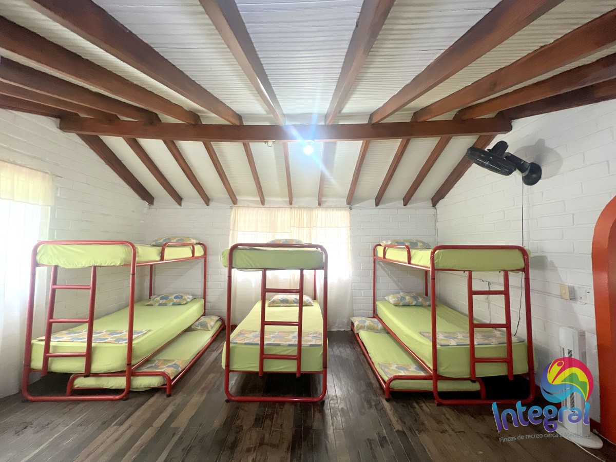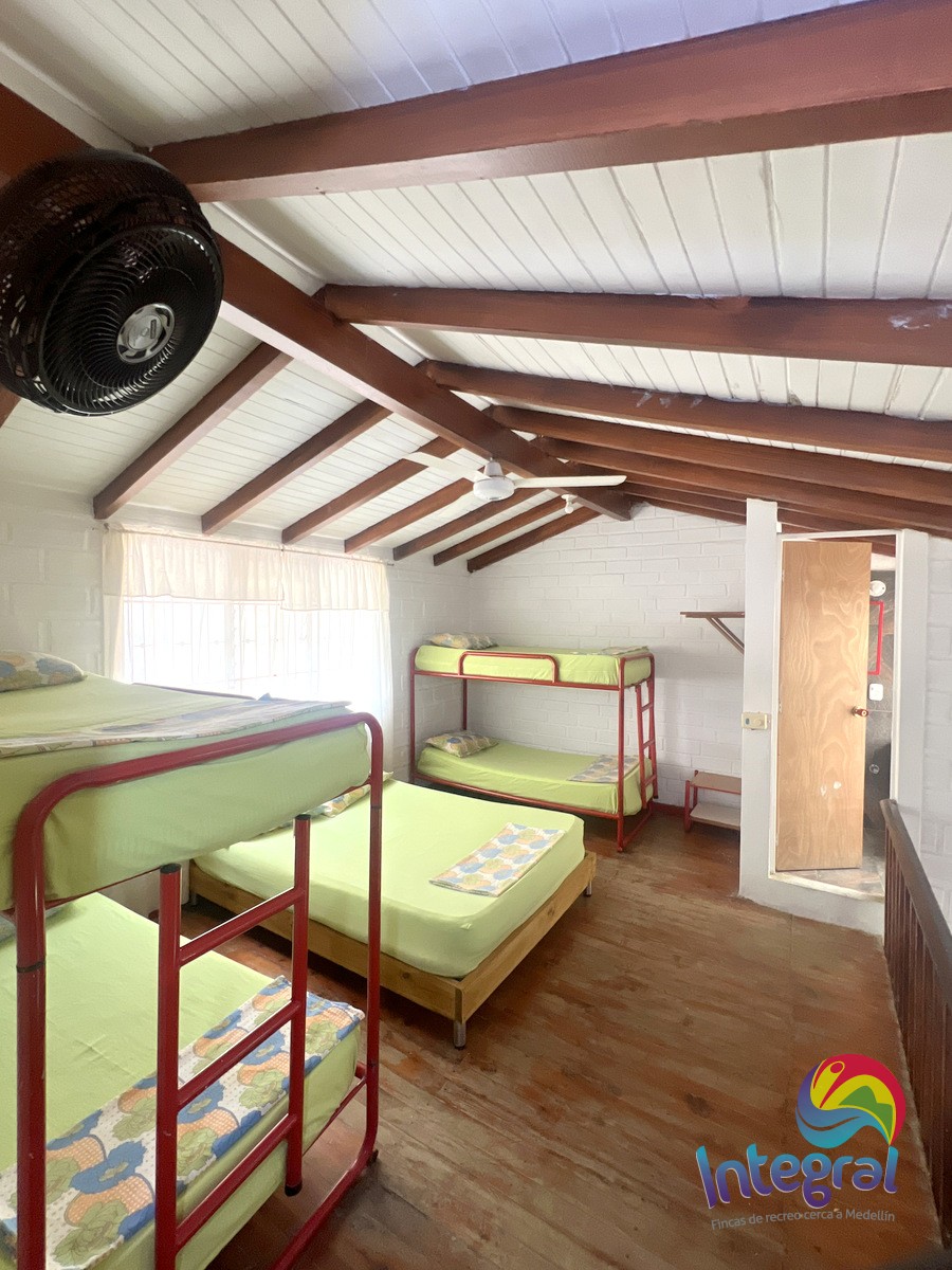 - Habitación 3 (segundo piso): dos camarotes sencillos, una cama doble, baño privado y ventilador