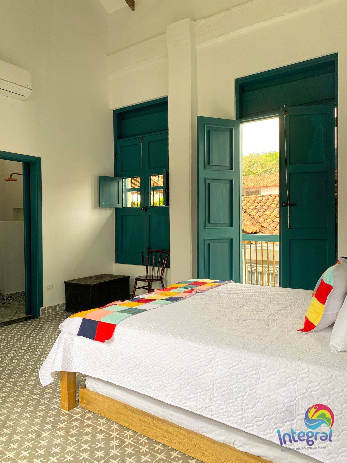 (16 Personas) Cauca Viejo, Jericó – Antioquia Precio Noche : Contacta un asesor Características Piscina Mesa de ping pong Jacuzzi 4 habitaciones 16 Personas COMODIDADESCada habitación cuenta con baño privado y muebles de ropa, ventilador de techo, aire acondicionado, camas dobles y auxiliares 5 BañosSala en primer pisoSala en segundo piso Wifi ZONAS COMUNESJacuzzi (2 horas por día) El costo es de acuerdo a la cantidad de personas Reserva este inmueble ya Sujeto a disponibilidad de agenda RESERVAR