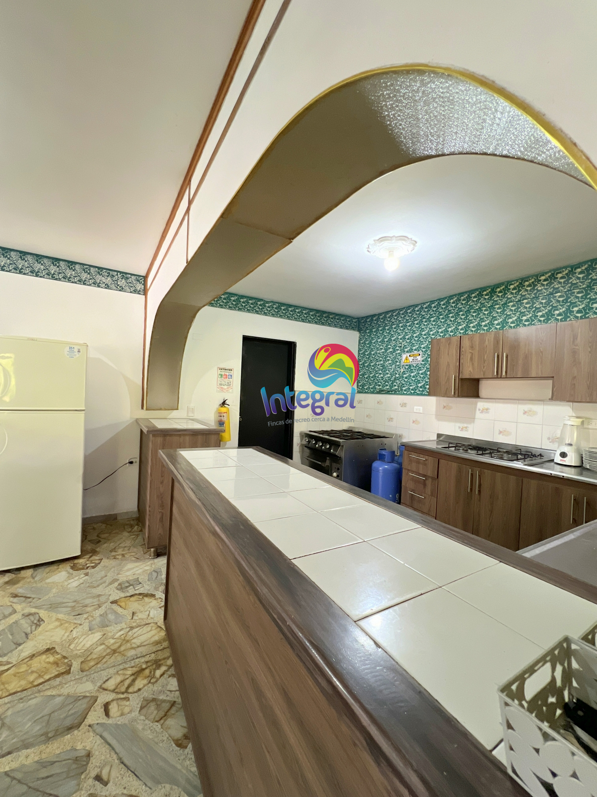 - Cocina semi integral (1 nevera, 1 congelador, 3 ollas presión, ollas grandes y medianas)